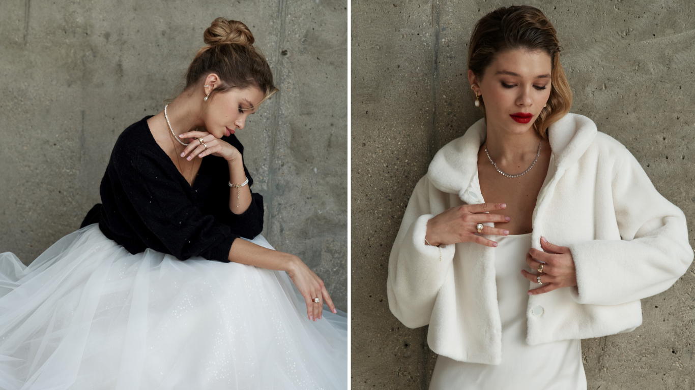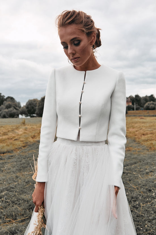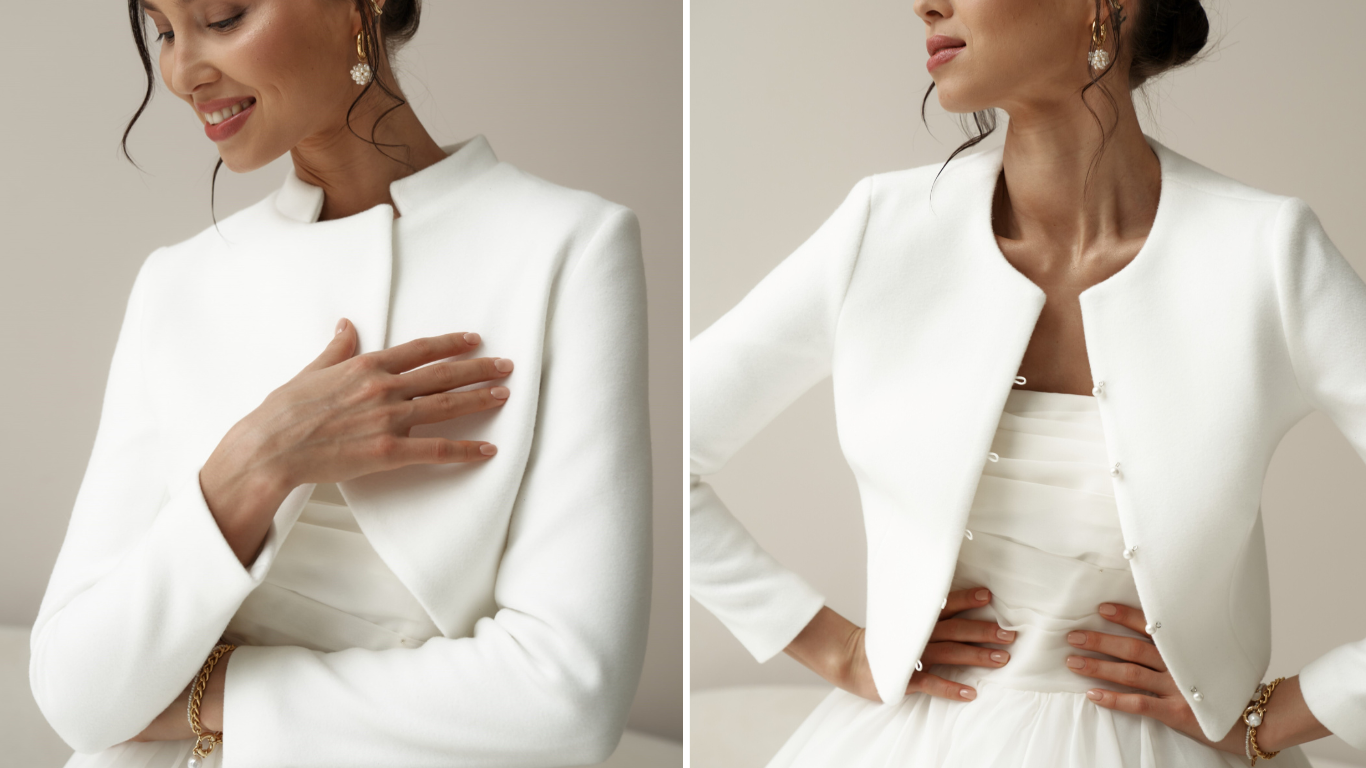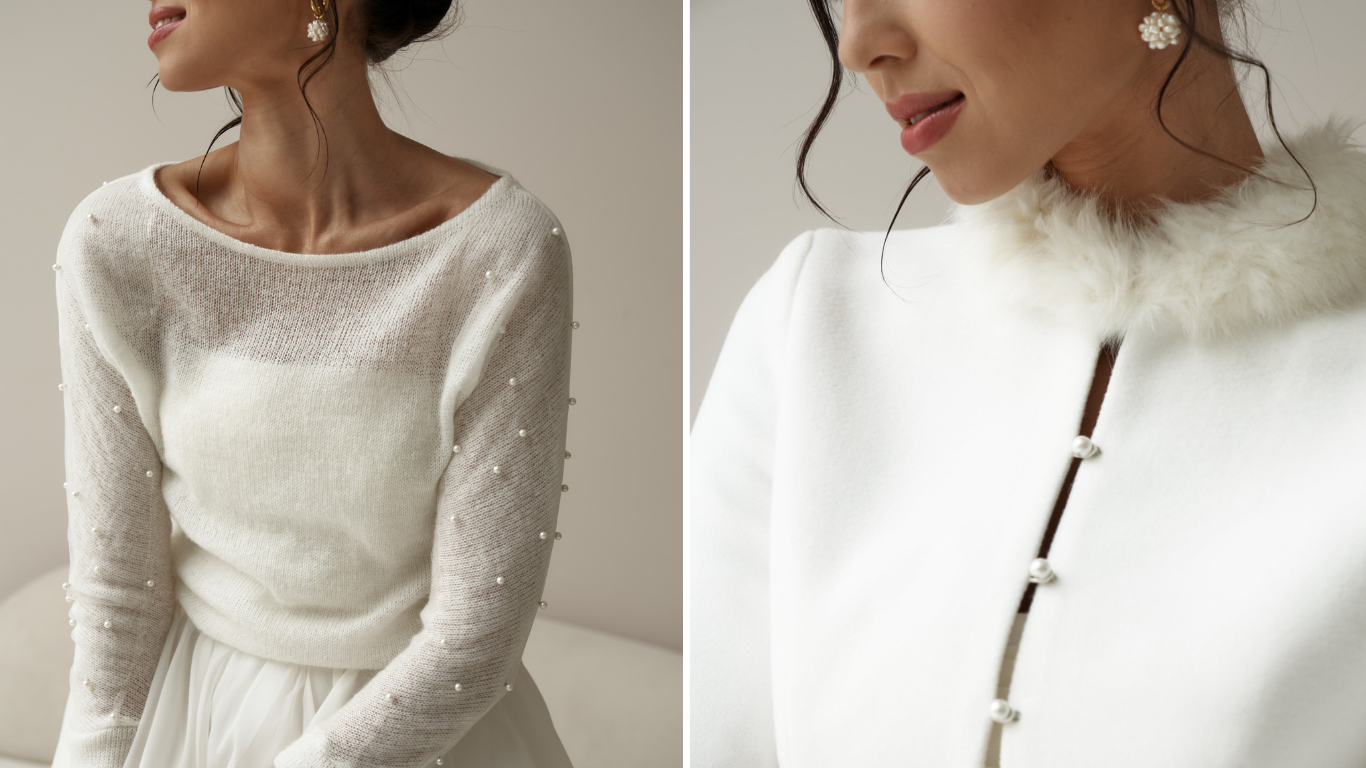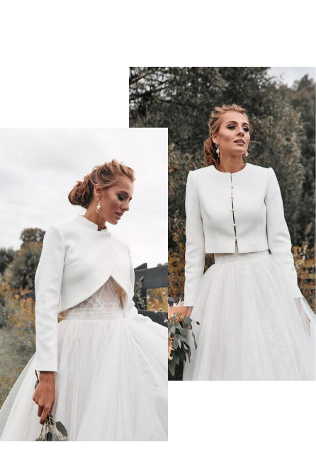 Stylish and elegant jackets and coats made of wool and cashmere will not only keep you warm on your special day, but will also become a modern addition to your bridal dress.