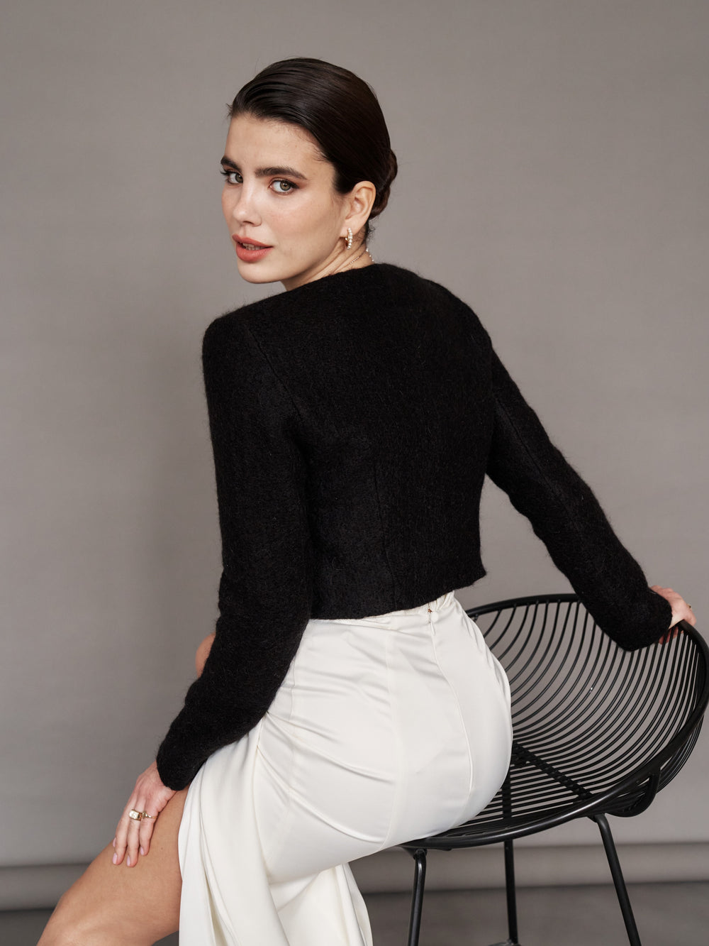Grey Wool Knitted Bridal Cardigan Bomber