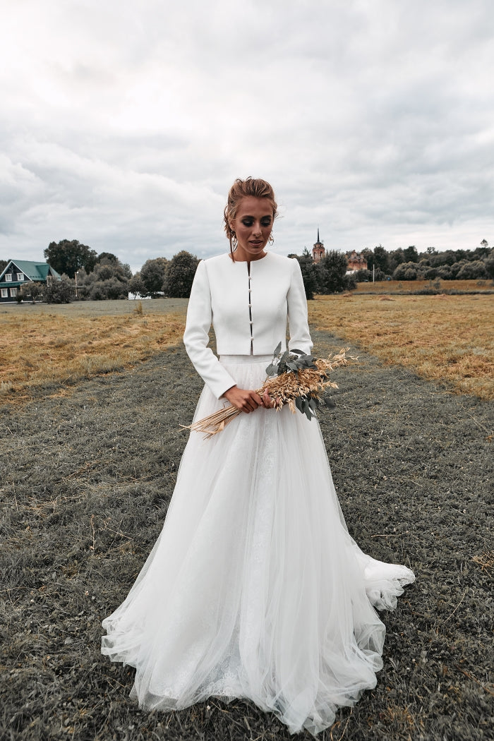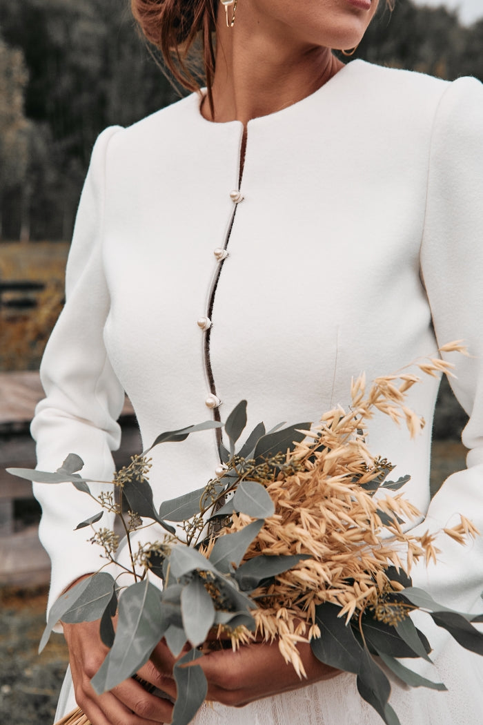 La chaqueta es perfecta para el clima frío y se puede usar fácilmente en elegantes vestidos de novia.