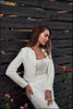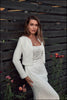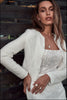 Esta chaqueta está confeccionada con un forro de viscosa sedosa, por lo que no sentirás picores. La blusa de novia está decorada con botones de perlas y se abrocha con pequeños ganchos.