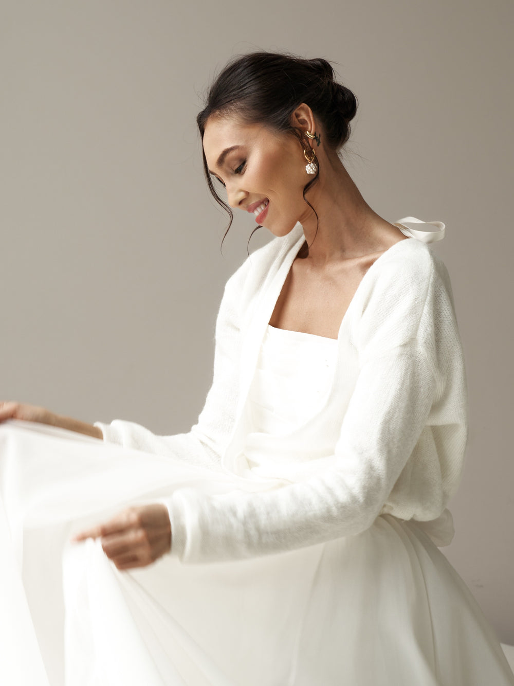 Bridal tulle wrap white bolero elegant blouse summer wedding top