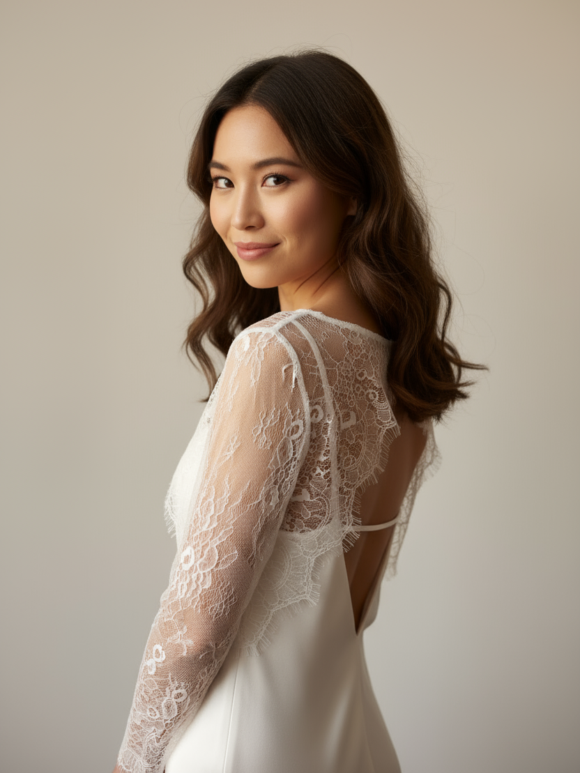 Sheer Lace Wedding Top – Long Sleeve Bridal Overlay for Dress