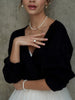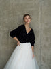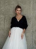 This cozy bridal cardigan is made of premium and 100% natural wool. The angora wool is soft and delicate, suitable for even the most sensitive brides. This beautiful and elegant black wedding sweater can become an extraordinary accent of your wedding look. The most important feature of this knitted wrap jacket is its unlimited styling possibility. It can be tied in a few different ways. You can wear it V-neck in front or back, leave it open, tie in front, tie around the waist once and leave long ties or wrap around the waist twice and tie a nice little bow. This cardigan gives great scope for imagination.