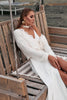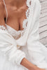 The wool bridal sweater has a deep V-cut decorated with delicate lace and on the one side and can be worn with a V-neckline front or back. It is a free size bridal knitted sweater which can be styled in different ways on your outfit.