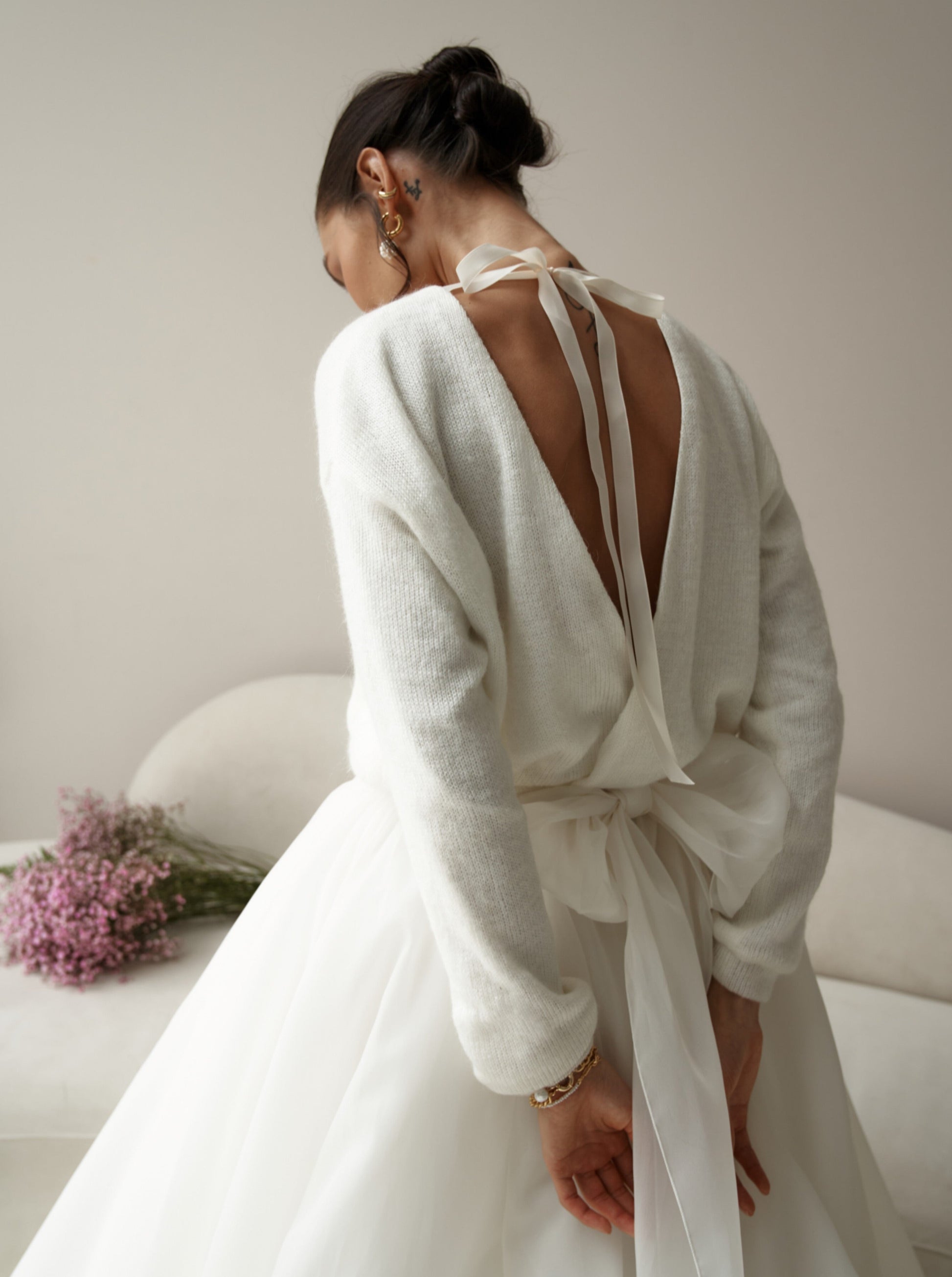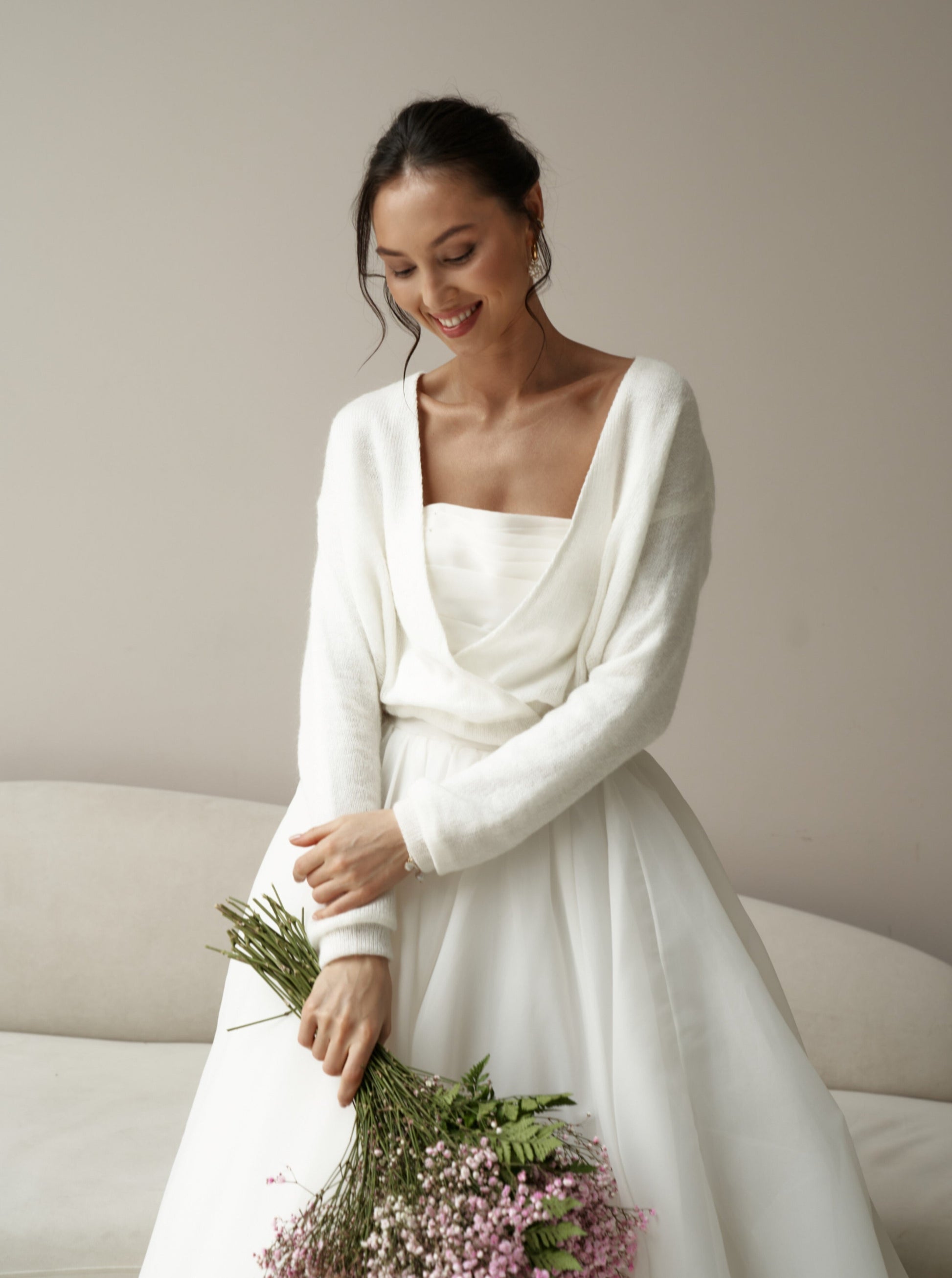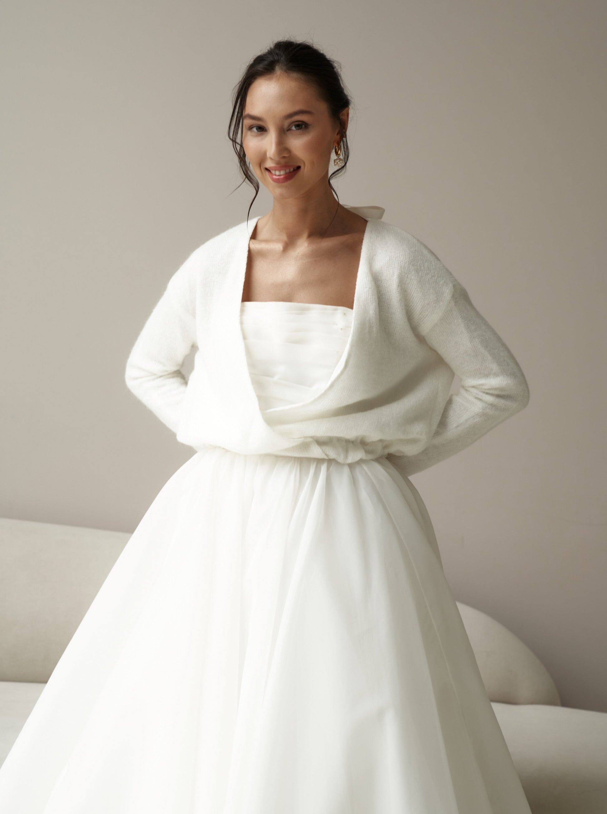 Wedding sweater in ivory color with bow