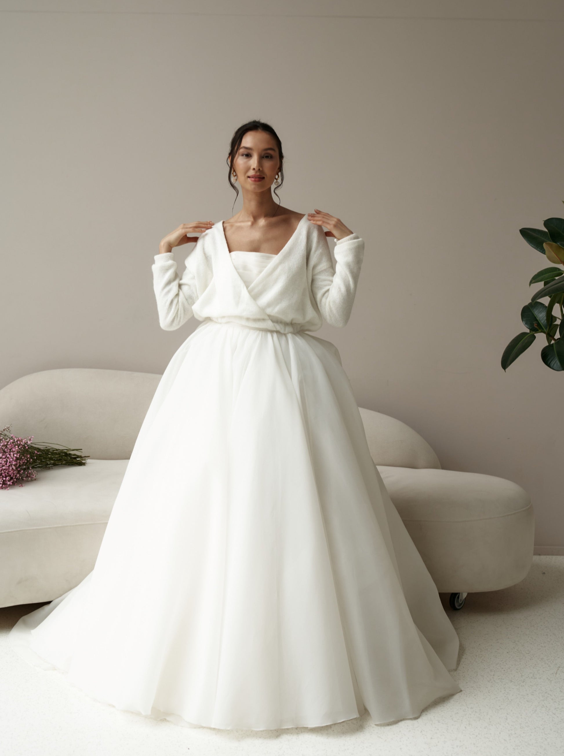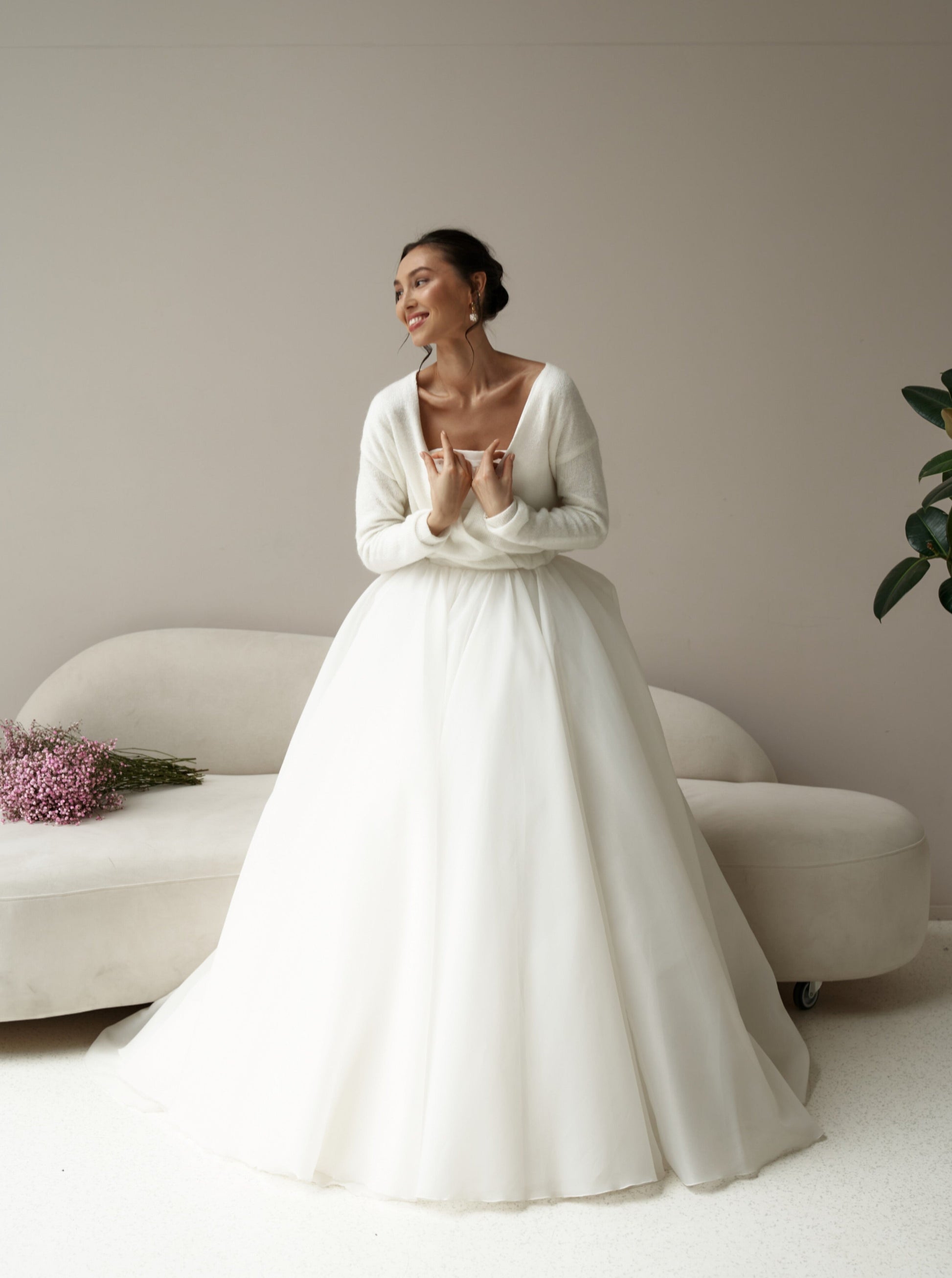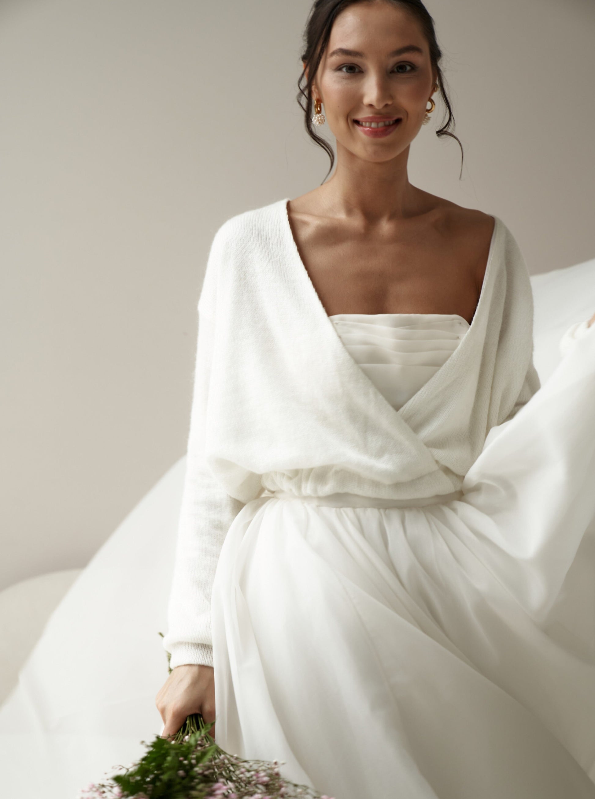 Wedding sweater in ivory color with bow